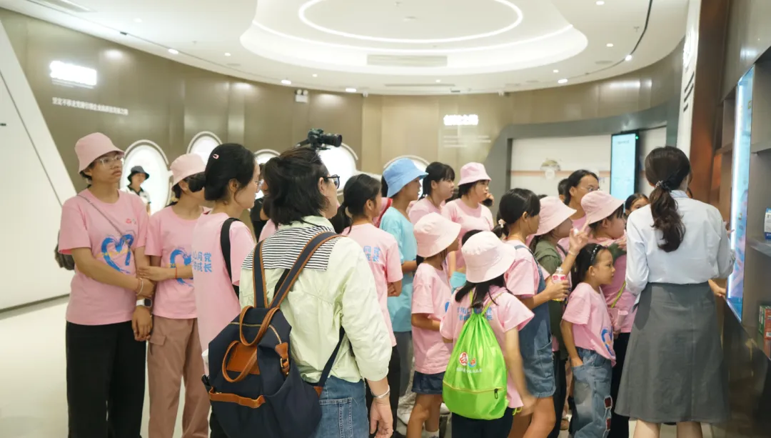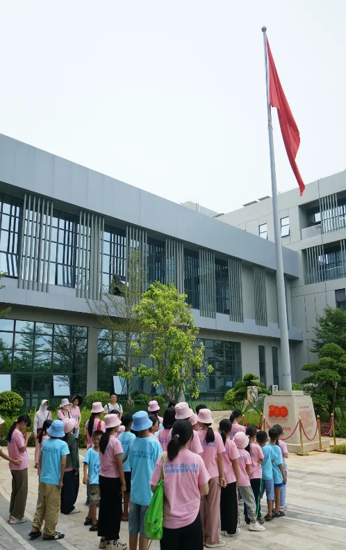紧接着,孩子们来到了建党百年庆典红旗——070号红旗前。讲解员讲述了九州酷游药业集团与庆典红旗的深厚渊源。孩子们听得津津有味,眼中闪烁着对党和国家的热爱与敬仰。